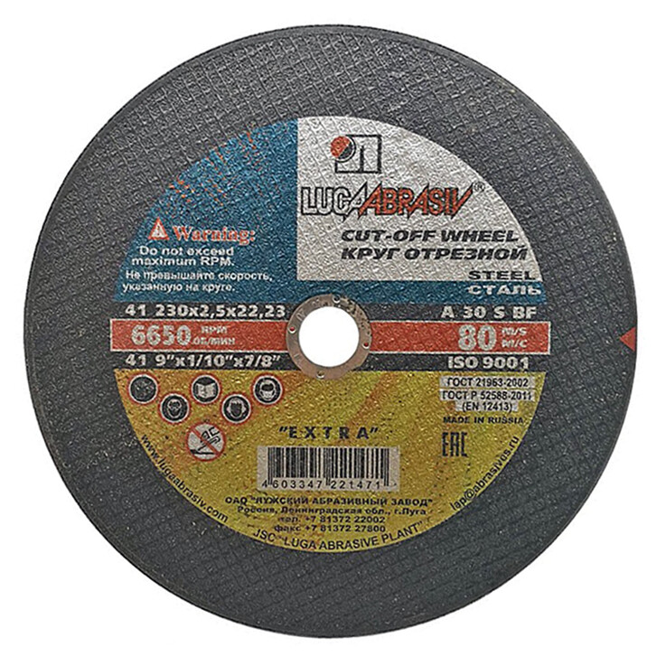 Диск отрезной армированный изготовлен на основе электрокорунда нормального марки 14А. Имея особо прочный профиль, используется в работах, связанных с резкой металла.