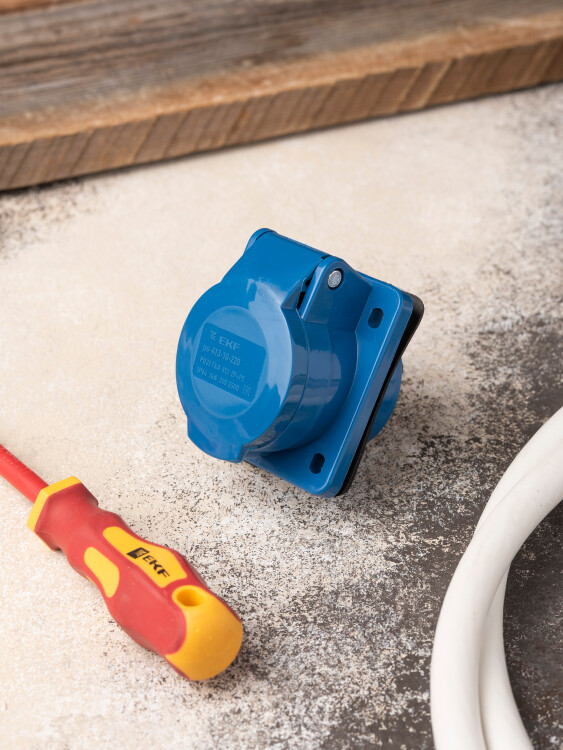 Розетка стационарная внутренняя EKF предназначена для подключения высокомощного промышленного и строительного оборудования. Также применяется для подключения мобильных пунктов питания, жилых трейлеров и т.д