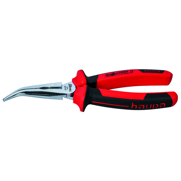 C 45, закаленные в масле, дополнительно индуктивное закаливание режущих кромок, для жесткой проволоки до 150 кгс/мм (N 1500), хромирование, насадная изоляция, с рычажной передачейДвухкомпонентные клещи с удлиненными губками DIN 5236 A VDE