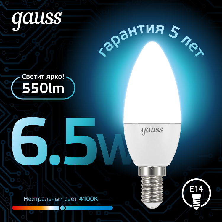Светодиодные лампы Gauss Candle созданы в форме свечи. Лампы подойдут как для домашнего, так и для коммерческого использования. Такой тип освещения прекрасно смотрится в светильниках без плафонов или устанавливается в люстры и бра. Модель обладает широким диапазоном цветовых температур и мощностей, что поможет создать атмосферу тепла и уюта или концентрации. Равномерный спектр света создает зрительный комфорт в любом помещении. Данный тип освещения от Gauss обеспечивают стабильную работу в течение всего срока службы.
