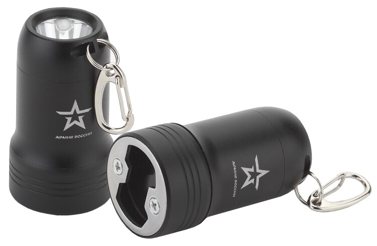 ЭРА Армия России Привал - компактный светодиодный фонарь-брелок со встроенной открывалкой. Световой луч отличной дальности - 28 метров. Качественный направленный свет за счёт использования сверхъярких современных светодиодов. Батарейки в комплекте. Простая и незаменимая вещь, если ты находишься вне дома. Выручит в любой ситуации, когда нужно что-то подсветить, и сделает путешествие комфортным. Изготовленный из анодированного алюминия корпус - это гарантия долговечности фонаря. Такое покрытие не боится коррозии и механических повреждений, на нём не остаётся царапин и сколов. Оно эстетично выглядит и приятно на ощупь. Мощный диод и специальный рефлектор позволяют этому карманному фонарику светить так же ярко и стабильно, как полноразмерный фонарь. Но главная изюминка - встроенная прямо в фонарь открывалка. Для запоминающихся привалов и посиделок с друзьями на свежем воздухе. В комплекте - источники питания 3хLR44, которые обеспечивают 25 часов непрерывной работы. С учётом того, что отдельное использование фонарей-брелоков в среднем не превышает минуты - одного комплекта батареек хватит на целый год.