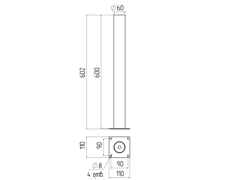 ЭРА Опора металлическая ОМ-0,6 для светильников НТУ черная h600мм