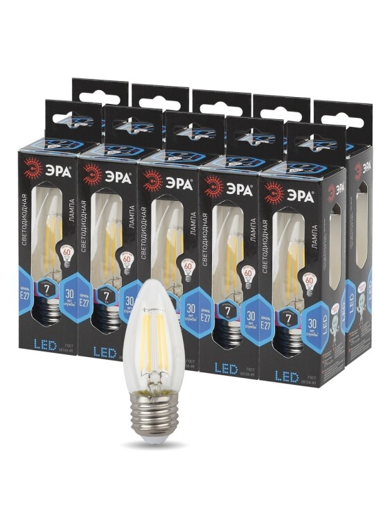 ЭРА Лампа светодиодная F-LED B35-7W-840-E27 7Вт филамент свеча нейтральный белый свет Е27