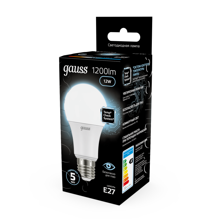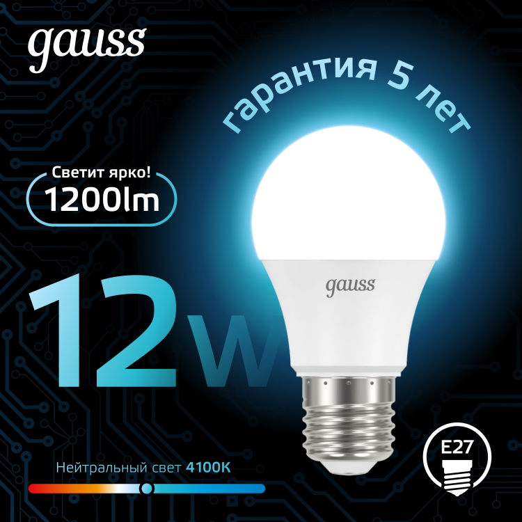 Лампа Gauss A60 предназначена для профессионального и яркое освещения при минимальном потреблении энергии - всего 12 ватт. Это долговечный вариант для современного образа жизни, где высокая энергоэффективность имеет большое значение.