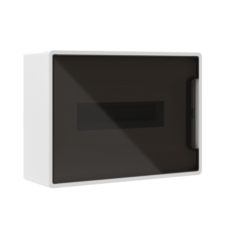 DKC FRAME Щиток 12 мод настенный , белый, с тонированной дверцей, с 2 шин. PEN на 8+6 отв.