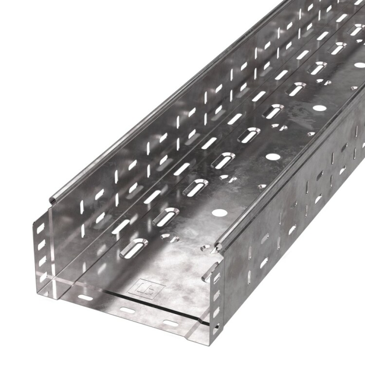Система металлических лотков изготовленных из стали с защитным покрытием по методу Сендзимира – это изделия, на которых защитное цинковое покрытие было нанесено на листовую сталь перед изготовлением. Толщина защитного покрытия варьируется от 10 до 22мкм. Климатическое исполнение изделий УХЛ2, что предусматривают эксплуатацию в помещении и под навесом, при температуре эксплуатации от -80 до +150°С.