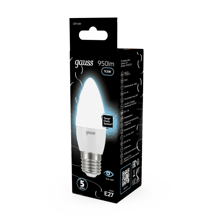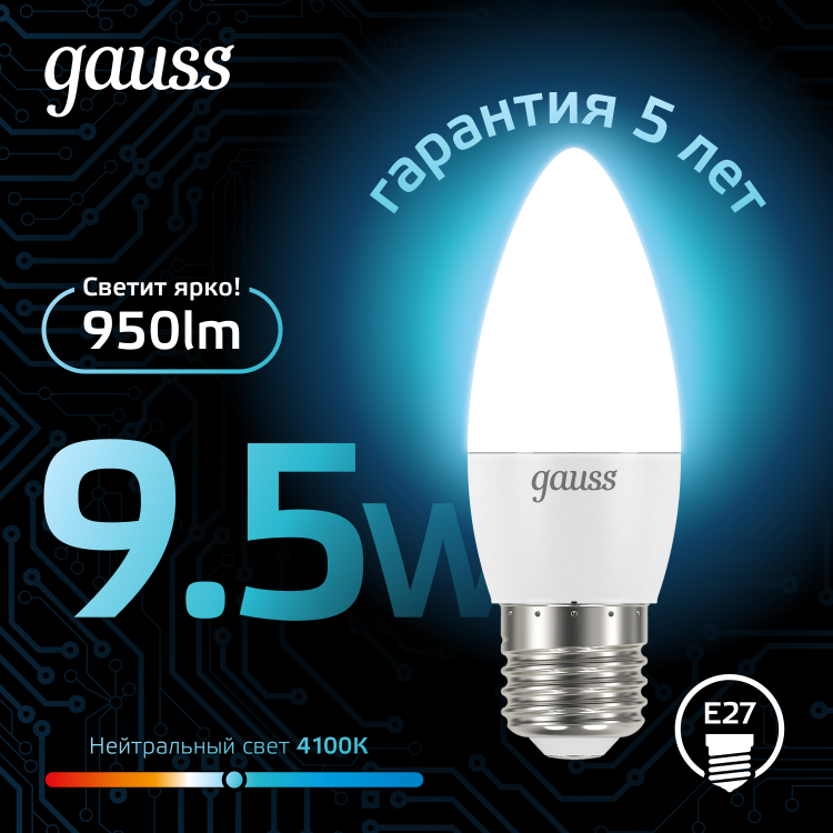 Светодиодные лампы Gauss Black Candle созданы в форме свечи. Лампы подойдут как для домашнего, так и для коммерческого использования. Такой тип освещения прекрасно смотрится в светильниках без плафонов или устанавливается в люстры и бра. Модель обладает широким диапазоном цветовых температур и мощностей, что поможет создать атмосферу тепла и уюта или концентрации. Равномерный спектр света создает зрительный комфорт в любом помещении. Данный тип освещения от Gauss обеспечивают стабильную работу в течение всего срока службы.