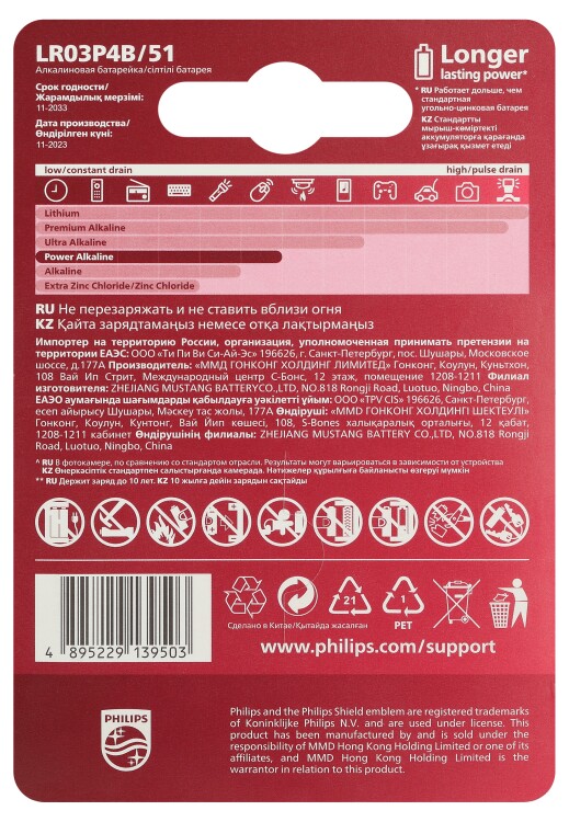 • Щелочные батареи Philips содержат 0 % кадмия, ртути и свинца