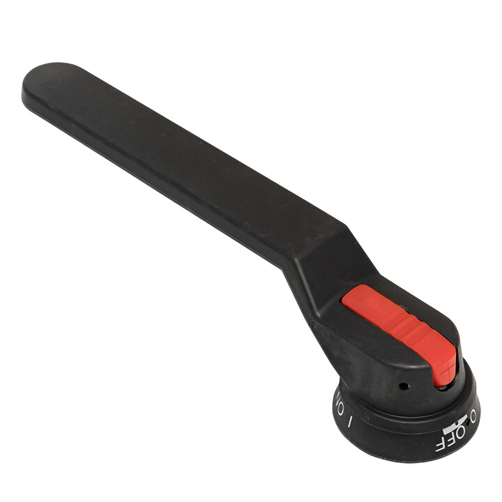Рукоятка для управления через дверь рубильниками TwinBlock EKF. Рубильники серии TwinBlock предназначены для пропускания номинальных токов, включения и отключения электрических цепей номинальным напряжением до 690 В переменного тока частотой 50 и 60 Гц в устройствах распределения электрической энергии. Для моделей без рукоятки предусмотрены два типа рукояток: выносная рукоятка для уп равления через дверь и рукоятка управления для прямой установки на рубильник.