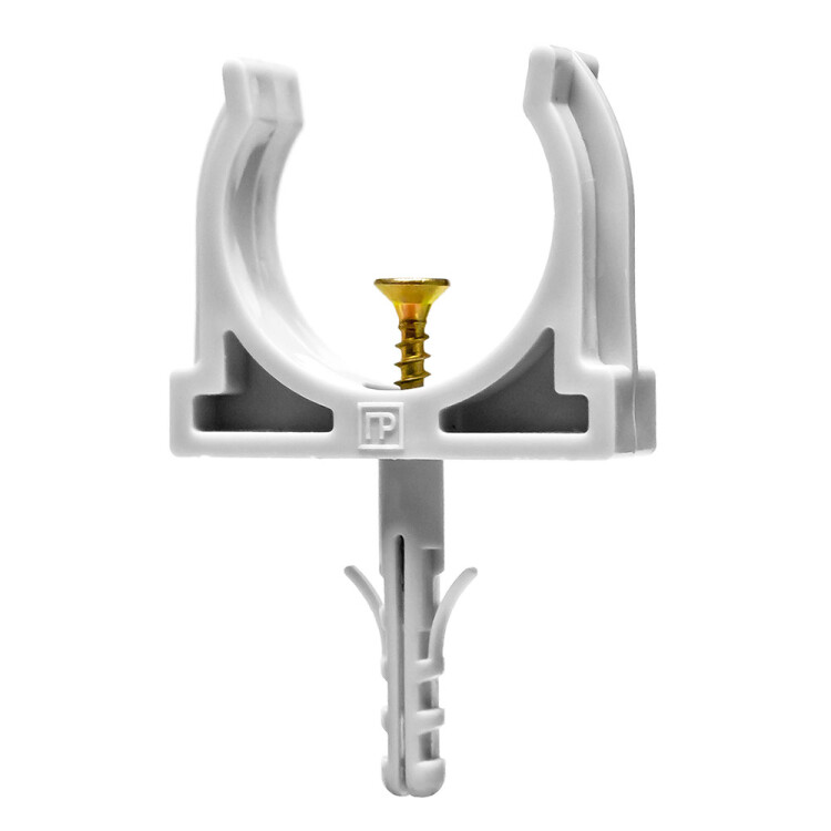 Предназначена для крепления гладких труб ПВХ или гофрированных труб одного диаметра к поверхности стен, потолков, полов или перегородок. Повышенная прочность и надежность клипсы за счет конструктивного объединения с дюбелем.