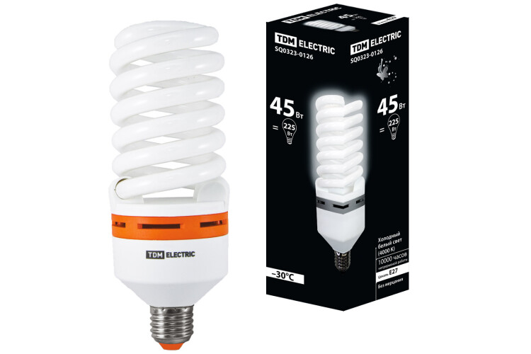Материалы:Колба:СтеклоОснование:РВТ (полибутилентерефталат) Преимущества:Лампы представлены в двух цветовых температурах: 4000 К и 6500 К.Установка ламп не требует использовния дополнительных пускорегулирующих устройств и аппаратуры.Срок службы 10 000 часов, что в 10 раз дольше срока службы ламп накаливания. Повышенная световая отдача (до 60 Лм/Вт). Диапазон рабочих температур от -30 до +45 С.Назначение:Предназначены для общего освещения. Упаковка:Коробка из картона Конструкция:Лампы производятся с колбами следующих типов: 4U, 6U, 8U, FS.Лампы мощностью 45, 55 и 65 ВТ поставляются с цоколем Е27.Лампы мощностью от 85 до 240 Вт - с цоколем Е40.
