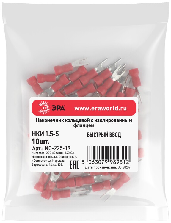 ЭРА Наконечник вилочный NO-225-119 НВИ 1.5-3 с изолированным фланцем упаковка 50 шт