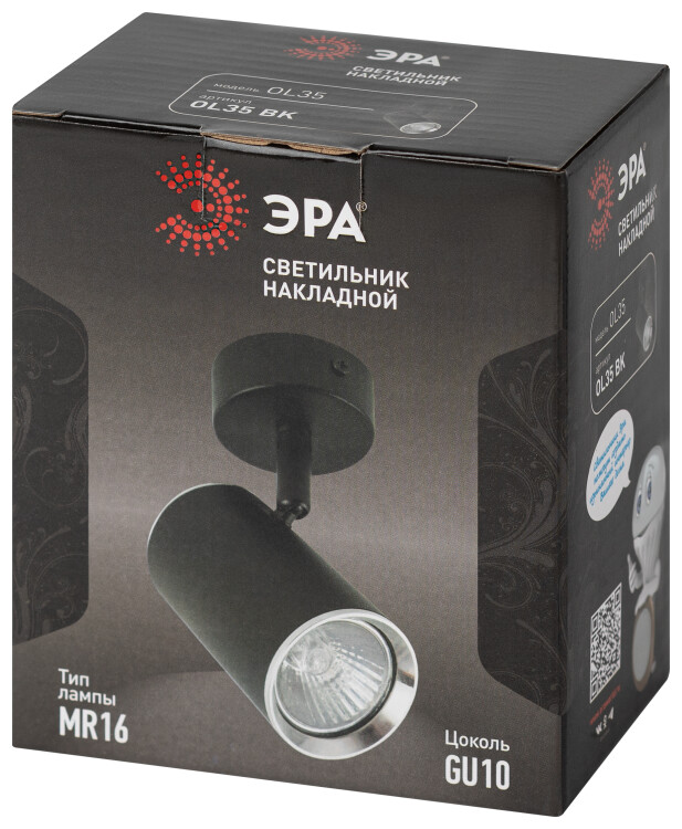 ЭРА Светильник настенно-потолочный спот OL35 BK под лампу MR16 GU10 черный/хром