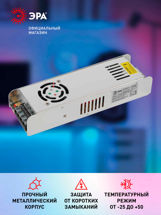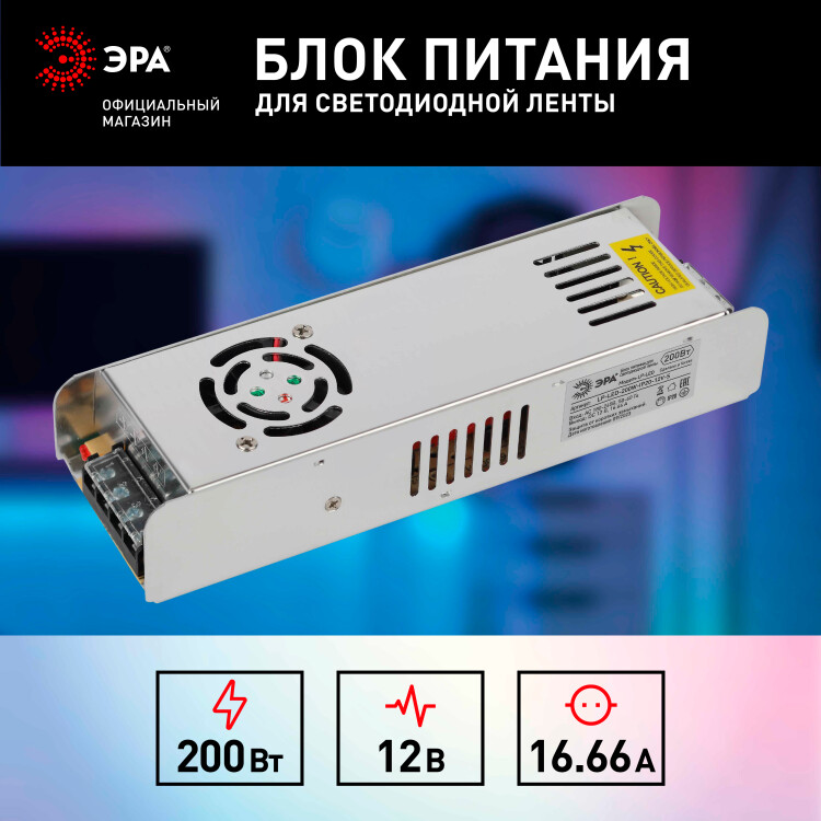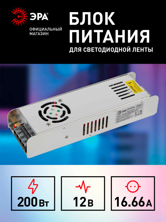 Блок питания для светодиодной ленты 200Вт 12В IP20 LP-LED-200W-IP20-12V-S ЭРА