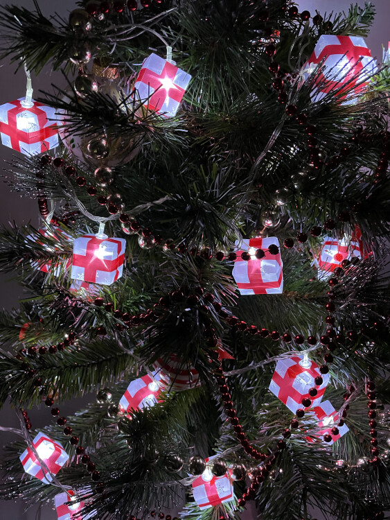 Новогодняя светодиодная гирлянда ЭРА "Подарки" (арт. Б0041895) с необычным оформлением ламп. Каждая лампочка выполнена в форме красиво упакованного праздничного подарка. На полупрозрачном проводе длиной 3 метра размещены 20 миниатюрных светящихся подарков. Свет гирлянды - холодный белый, что отлично подходит к атмосфере зимних праздников и создаёт эффект снегопада. Провод гирлянды пр актически незаметен, складывается волшебное впечатление, что лампы висят в воздухе. Эта стильная современная гирлянда - быстрый и простой способ оригинально украсить к праздникам дом, офис или общественное пространство.