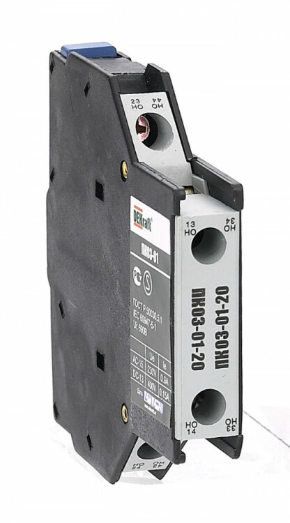 Приставка контактная серии ПК-03-01 для контакторов КМ-103 DEKraft; кол-во контактов - 2НО; ном.ток 10 А; ном.напряжение до 690 В; установка с лицевой стороны; степень защиты IP20. Приставки контактные предназначены для увеличения количества вспомогательных контактов контактора. Приставки боковой установки ПК-03-01 являются эксклюзивом и позволяют значительно сэкономить на глубине шкафа, ко торый будет стоить дешевле.