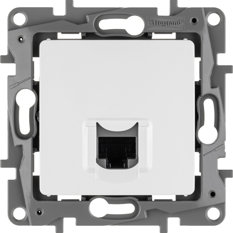 Розетка компьютерная (информационная)Legrand Etika RJ45 UTP скрытого монтажа, цвет белый. Предназначена для быстрого подключения персональных компьютеров к информационным сетям категории 5e.