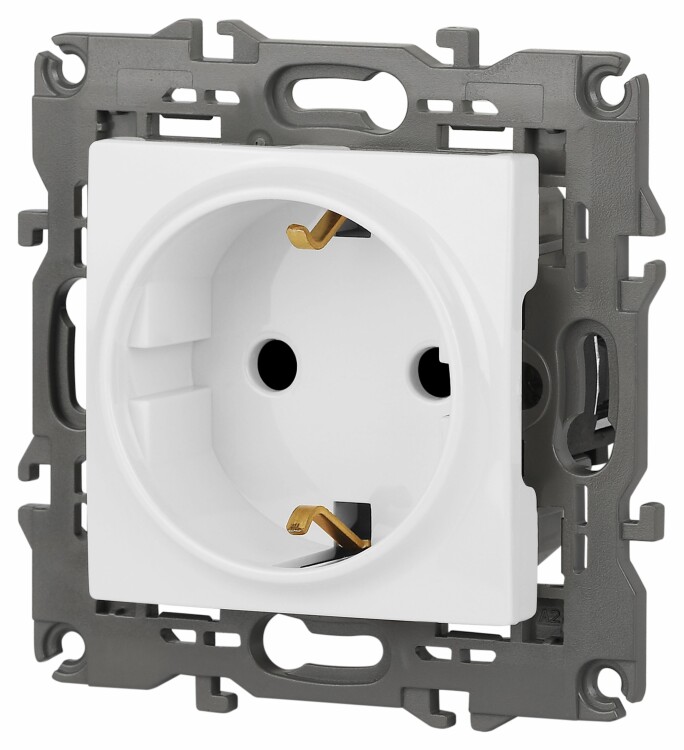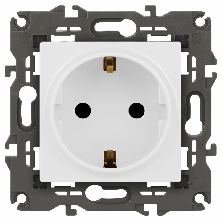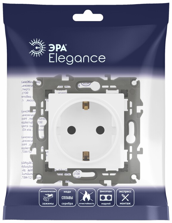 Розетка с заземлением со шторками Эра Elegance белый 14-2102-01. Оснащёна автоматическими клеммами для надёжной фиксации жил кабеля в механизме. Рамки приобретаются отдельно. Рамки Эра Elegance ПЛАСТИК: 1 пост 14-5001-хх, 2 поста 14-5002-хх, 3 поста 14-5003-хх, 4 поста 14-5004-хх, 5 постов 14-5005-хх; СТЕКЛО: 1 пост 14-5101-хх, 2 поста 14-5102-хх, 3 поста 14-5103-хх, 4 поста 14-5104-хх; МЕТАЛЛ: 1 пост 14-5201-хх, 2 поста 14-5202-хх, 3 поста 14-5203-хх, 4 поста 14-5204-хх; ДЕРЕВО: 1 пост 14-5301-хх, 2 поста 14-5302-хх, 3 поста 14-5303-хх, 4 поста 14-5304-хх (хх - код цвета: 00-прозрачный, 01-белый, белёный дуб, 02-слоновая кость, 03-алюминий, 04-шампань, 05-чёрный, чёрное дерево, 07-ясень, 09-дуб, 10-венге, 11-клён, 14-медь, 21-жёлтый, 22-оранжевый, 23-красный, 25-бордо, 26-лайм, 27-зелёный, 28-голубой, 29-синий, 30-розовый, 31-мокко, 32-серый, 41-сталь, 42-титан).