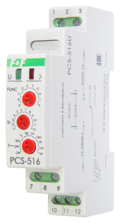 Реле времени программируемое предназначено для включения/выключения потребителя в системах промышленной и бытовой автоматики на заданный отрезок времени, многофункциональное, с входами START и RESET, 1 модуль, монтаж на DIN-рейке 12-264В AC/DC 8А 1NO/NC IP20 Евроавтоматика ФиФ