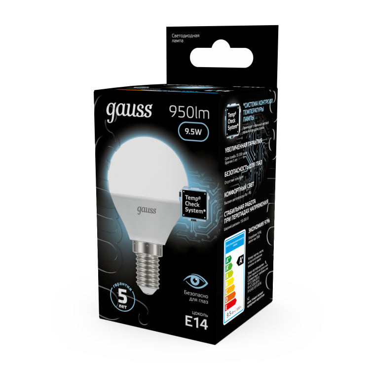 Светодиодные лампы Gauss Black в форме шара подойдут для большинства светильников, так как в категории присутствуют два вида цоколя. Светодиодные лампы Gauss Black активно используются для освещения жилых и офисных помещений. Лампы излучают приятный свет, который комфортен для глаз, без эффекта пульсации. Матовая колба ламп равномерно рассеивает свет и подходит для открытых светильников и прозрачных плафонов. Все лампы Gauss при колебаниях напряжения лампы не теряют яркость и не мерцают.