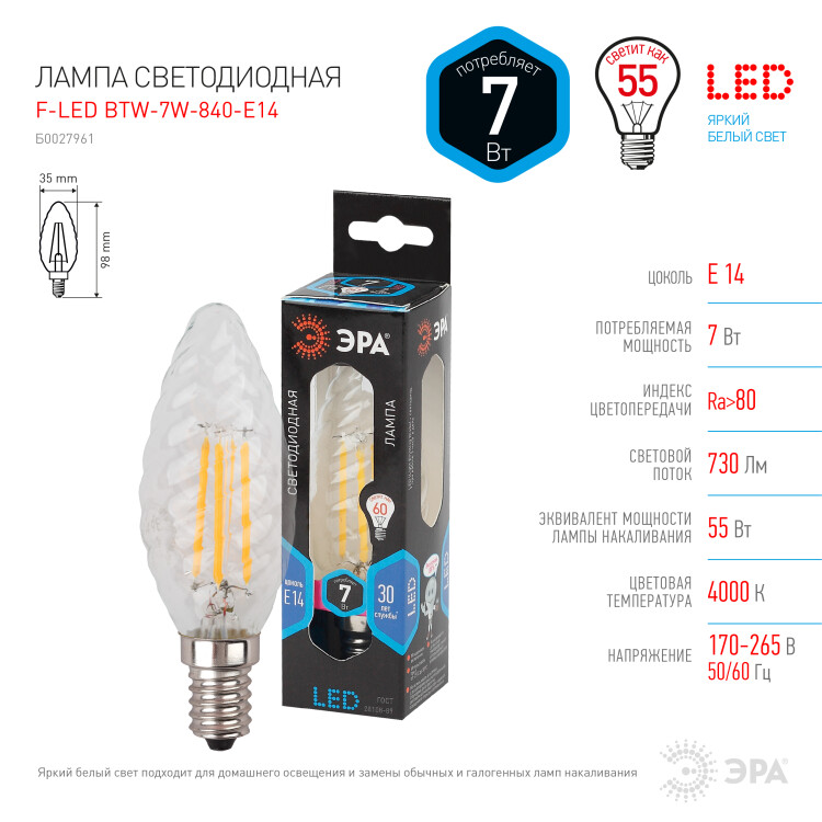 Светодиодная филаментная лампа (с нитевидными светодиодами) серии F-LED. Лампа премиального сегмента. Максимально похожа на лампу накаливания, может использоваться в дизайнерских интерьерах. Угол рассеивания светового потока 360 градусов.