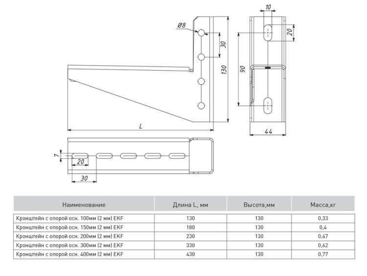 EKF PROxima Кронштейн с опорой осн. 100мм (2мм).