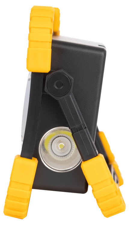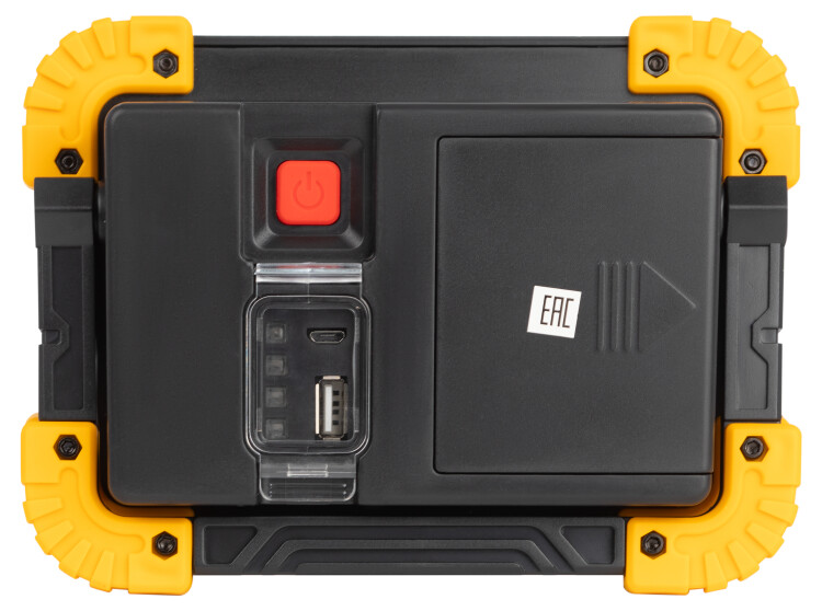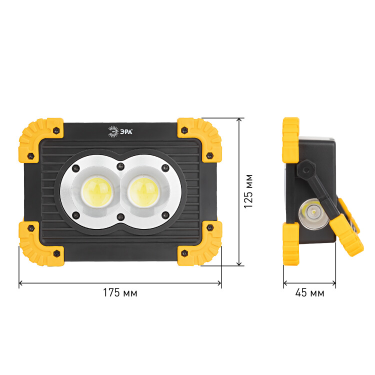 ЭРА PA-803 - стильный компактный фонарь-прожектор с двумя типами питания: от встроенного аккумулятора либо от двух пальчиковых батареек (2 х АА). Входит в специальную серию "Практик", созданную специально для рабочих профессий. Успешно применяется на стройках, при ремонте и монтаже. Станет вашим надежным помощником в быту, в поездках. Удобная поворотная ручка-подставка дает возможность регулировать направление света, фиксировать фонарь в различных положениях, подвешивать. Фонарь имеет двойной светильник из сверхъярких COB-светодиодов, а также боковой свет с направленным лучом (1 LED). Высокий световой поток - 860 Лм. 4 режима работы для разных задач: 1) боковой свет; 2) головной свет 100% яркости; 3) головной свет 50% яркости; 4) головной мигающий свет. Яркий необычный фонарь запоминающегося дизайна. Эргономичная прямоугольная форма, защитные вставки по углам, эффектная черно-желтая цветовая гамма.