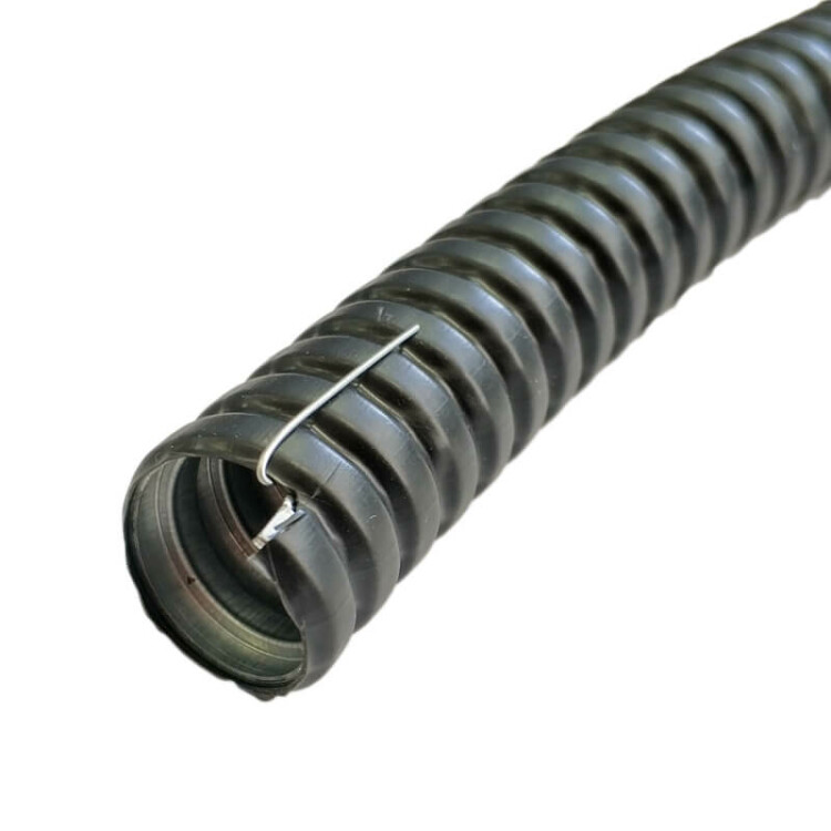 Герметичный не поддерживающий горения металлорукав в ПВХ изоляции МРПИ нг с протяжкой 12 мм, предназначен для защиты от механических повреждений электротехнических кабелей, линий связи, а также других проводниковых коммуникаций. Состоит из негерметичного металлорукава из оцинкованной стали, на внешнюю сторону которого нанесено не поддерживающее горение пиливинилхлоридное покрытие. ПВХ оболочка создаёт водонепроницаемость, стойкость к вредному воздействию окружающей среды, значительно увеличивает прочность на разрыв, защищает от поражения электрическим током. Стальная проволока (протяжка или зонд) внутри металлорукава, обеспечивает быструю и удобную протяжку кабеля при монтаже без дополнительных приспособлений Завод электротехнической арматуры изготавливает МРПИ нг нестандартных размеров (внутренний d 70,80,90 мм) и любых цветовых оттенков под заказ. Условный проход Внутренний диаметр D1 Внешний диаметр D2 Шаг навивки F Прочность на разрыв, Н 12 мм 11.2 15.1 5.5 100