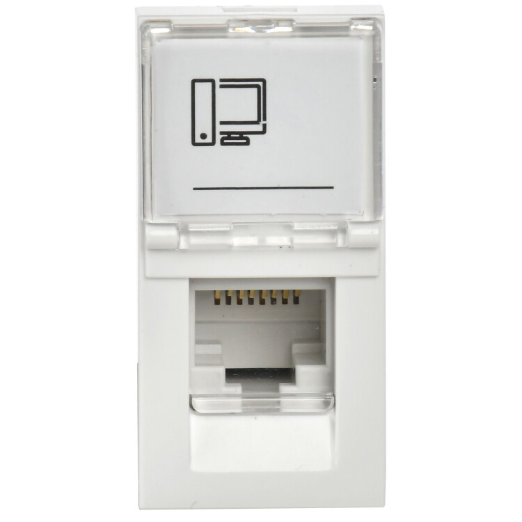 Модульные электроустановочные изделия 45х45 серии ПРАЙМЕР предназначены для организации рабочего места с применением кабель-каналов, напольных лючков или розеточных блоков, а также для открытого монтажа в коробки типа КМКУ. Розетка компьютерная RJ-45 предназначена для подключения сетевого кабеля компьютерной и прочей оргтехники. Розетка на 1 вход. Комплектуются одним модулем Keystone Jack категории 5е UTP IDC. Размеры, ВхШхГ,мм: 45х22,5х41,7. Цвет - белый. Размеры модульных ЭУИ ПРАЙМЕР: 1 модуль = 45х22,5 мм 2 модуля (1 пост) = 45х45 мм