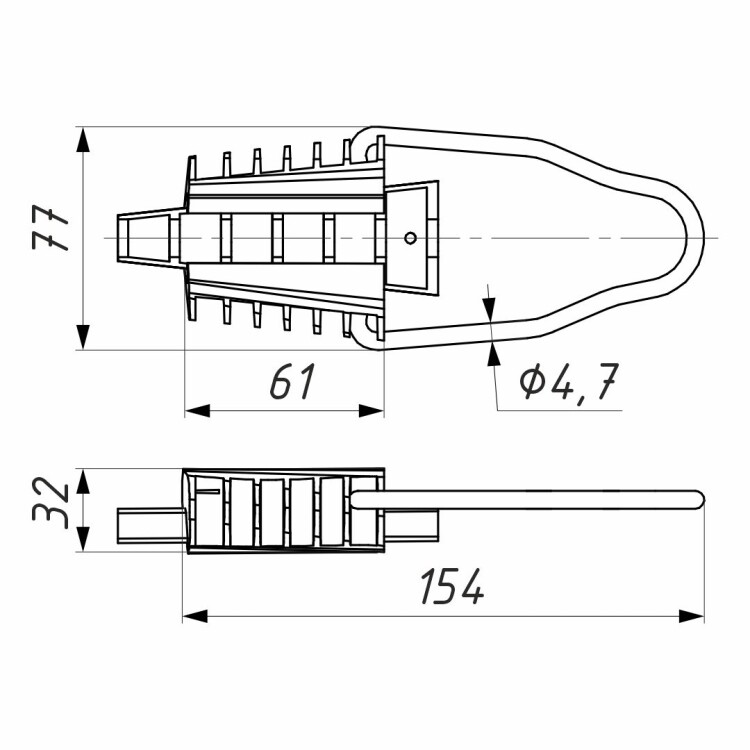 Предназначен для концевого крепления проводов СИП-4 на ответвлении от магистрали к абонентским вводам. Используются для крепления двух-жильного провода. Зажим обеспечивает надежную фиксацию и удержание проводов путём натяжения при монтаже воздушных линий электропередач. Крепится на опорах или стенах с помощью крюков и кронштейнов. Установка зажима производится благодаря наличию скобы. Изготовлен из диэлектрического материала, выполняет изолирующую функцию. Подвижные клинья выполнены с особым рельефом, надежно фиксирующим проводник, не повреждая изоляцию. Скоба зажима съемная, обеспечивает удобную и быструю фиксацию на кронштейне или крюке. Зажим не требует монтажного инструмента. Обладает высокой прочностью, устойчивостью к ультрафиолету, коррозии, воздействию экстремальных температур, влажности и другим погодно-климатическим факторам.