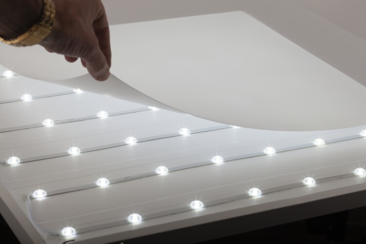 Светодиодная панель. Светит, как ультратонкая панель приятным равномерным светом, и не уступает по яркости, при этом имеет значительно более низкую цену. Драйвер встроен в корпус светильник полностью готов к установке и легко монтируется на потолок любого типа как в качестве встраиваемого светильника, так и накладным или подвесным способом. Легко устанавливается в потолки Армстронг, на гипсокартонные, бетонные потолки. Позволяет в разы ускорить, а значит и удешевить монтаж. Цветовая температура: 6500 К - холодный белый свет, повышающий работоспособность и концентрацию внимания. Светильник создаёт качественный ровный свет: индекс цветопередачи Ra - выше 80, что обеспечивает отличную цветопередачу; коэффициент пульсаций - ниже 5% - соответствует самым жестким требованиям СанПин. Такое освещение рекомендовано для учебных, дошкольных, медицинских учреждений. Является идеальным решением для офисных и общественных пространств. Габаритная яркость: 3550 кд/м2. Класс светораспределения: П. Класс по ограничению яркости: 1.