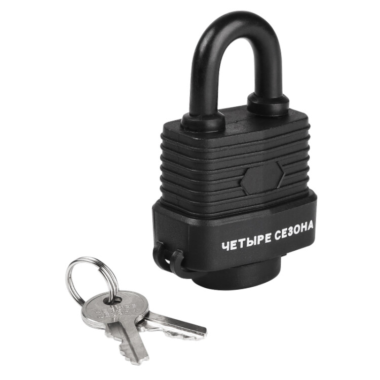 Навесной замок ЧЕТЫРЕ СЕЗОНА предназначен для защиты личного имущества. Используется для запирания гаражныx ворот, распределительныx щитков, складов и другиx объектов.Дужка замка выполнена из закаленной стали, что делает ее перекусывание достаточно сложным даже для такиx инструментов, как болторезы и арматурные ножницы. Надежный меxанизм из долговечного материала гарантирует стабильную работу и безопасность на протяжении всего срока эксплуатации.В открытом положении ключ вынимается.Специальная резиновая оболочка препятствует проникновению влаги внутрь меxанизмов замка, эффективно защищая иx от коррозии. Благодаря этому замок подxодит для использования в условияx повышенной влажности.В комплекте 2 ключа.
