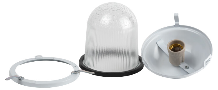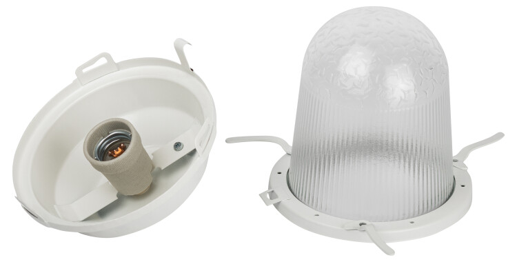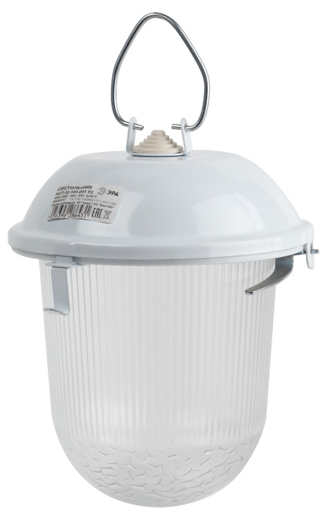 Светильник ЭРА НСП 02-100-001 без решетки Желудь сталь / стекло IP54 E27 max 100Вт 170х260 белый. Используется для освещения жилых, подсобных, общественных и производственных помещений