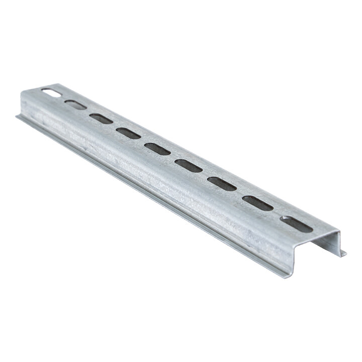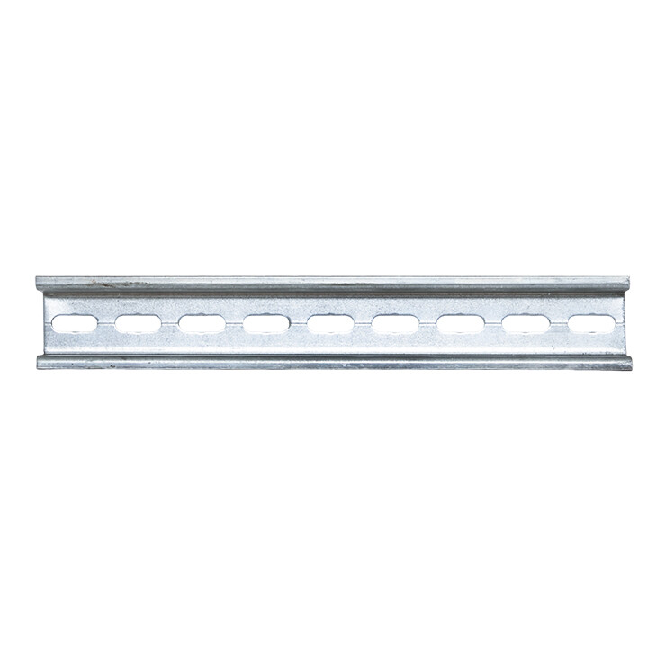 DIN-рейка Ω-профиля (ТН-35), длина — 2 м (2000 мм), высота профиля — 15 мм. Изготовлена из оцинкованной стали толщиной 1,5 мм, что обеспечивает высокую прочность и устойчивость к нагрузкам. Ширина — 35 мм, что гарантирует совместимость с оборудованием различных производителей, упрощая установку и организацию пространства внутри щитов.