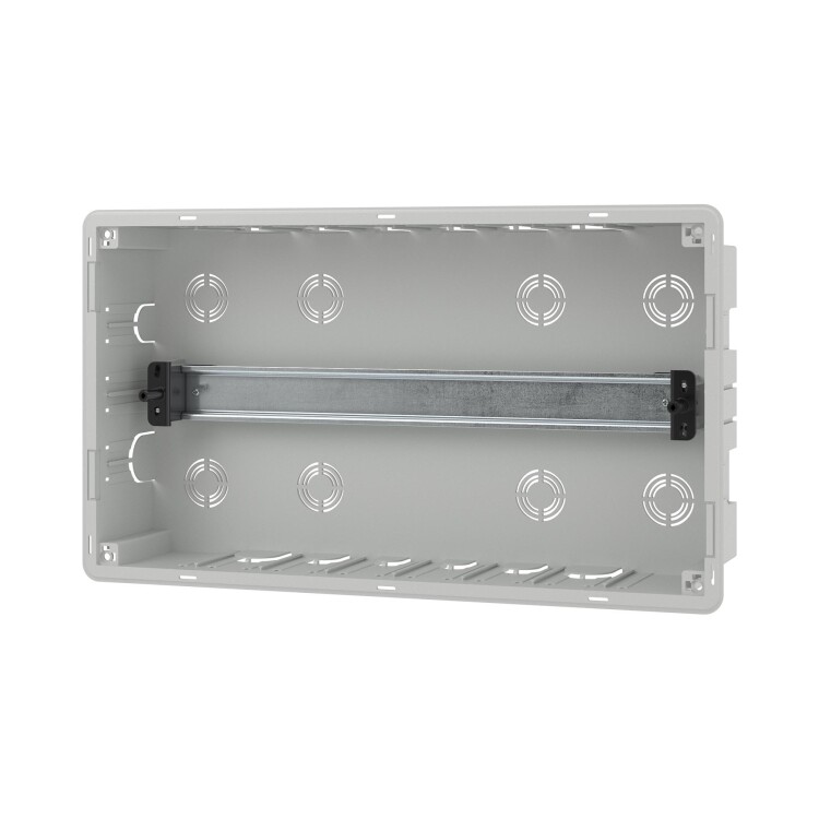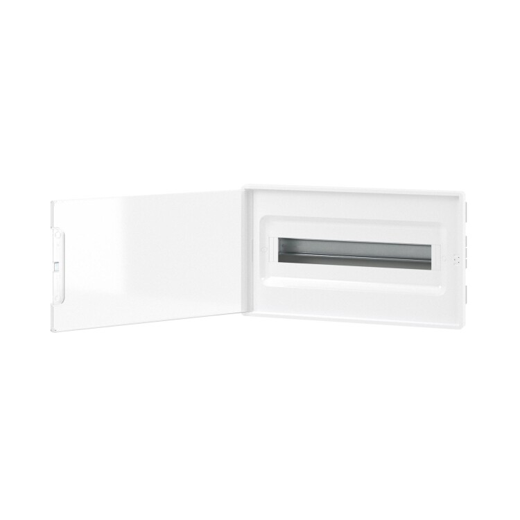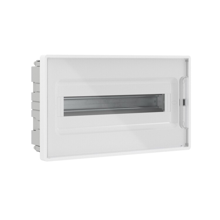 Встраиваемый модульный щиток «Фрейм» (FRAME) предназначен для монтажа скрытым способом в полые стены в жилых и административных помещениях. Применяется для установки модульных устройств. Съемная рама с DIN-рейками позволяет сначала смонтировать и подключить силовое оборудование и затем установить его в основание щитка в стену. Установка стандартных латунных шин возможна по всем стенкам основания. За счет симметричного конструктива щитка есть возможность изменения направления открывания дверцы. Количество модулей - 18. Параметры щитка: цвет корпуса белый, цвет двери - прозрачная, ширина - 416,4 мм, высота - 242,4 мм, глубина - 101 мм. Материал - термостойкий и ударопрочный пластик. В комплекте DIN-рейка из гальванической оцинкованной стали, 2 шины PEN на 8 и 10 отверстий, держатели для полых стен