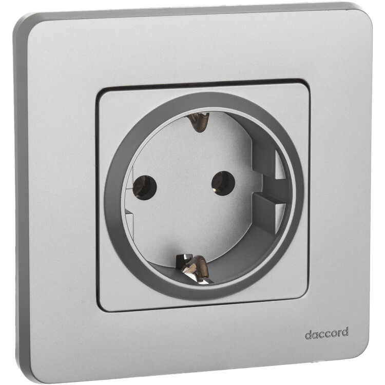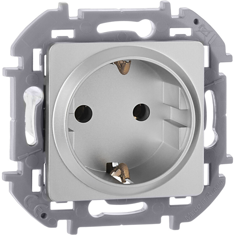Розетка с заземлением для скрытого монтажа Legrand/Daccord Inspiria, цвет "Алюминий", максимальный ток 16А, напряжение ~250В, максимальная мощность 3680Вт, винтовые зажимы.