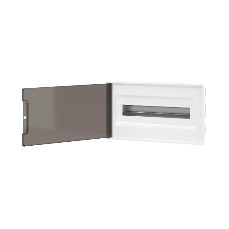 Встраиваемый модульный щиток «Фрейм» (FRAME) предназначен для монтажа скрытым способом в полые стены в жилых и административных помещениях. Применяется для установки модульных устройств. Съемная рама с DIN-рейками позволяет сначала смонтировать и подключить силовое оборудование и затем установить его в основание щитка в стену. Установка стандартных латунных шин возможна по всем стенкам основания. За счет симметричного конструктива щитка есть возможность изменения направления открывания дверцы. Количество модулей - 18. Параметры щитка: цвет корпуса белый, цвет двери - тонированная, ширина - 416,4 мм, высота - 242,4 мм, глубина - 101 мм. Материал - термостойкий и ударопрочный пластик. В комплекте DIN-рейка из гальванической оцинкованной стали, 2 шины PEN на 8 и 10 отверстий, держатели для полых стен