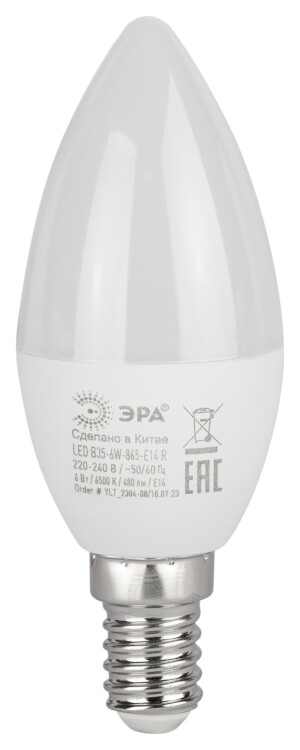 Экономичная светодиодная лампа ЭРА Серии Бюджет с отличными характеристиками для установки в люстры и все типы бытовых светильников - потолочные, настольные, бра. Бережёт электроэнергию, ярко светит, имеет долгий срок службы. Цветовая температура - холодный белый свет. Такое освещение бодрит, повышает работоспособность. Этот современный источник света создаёт комфортное и безопасное для глаз освещение.
