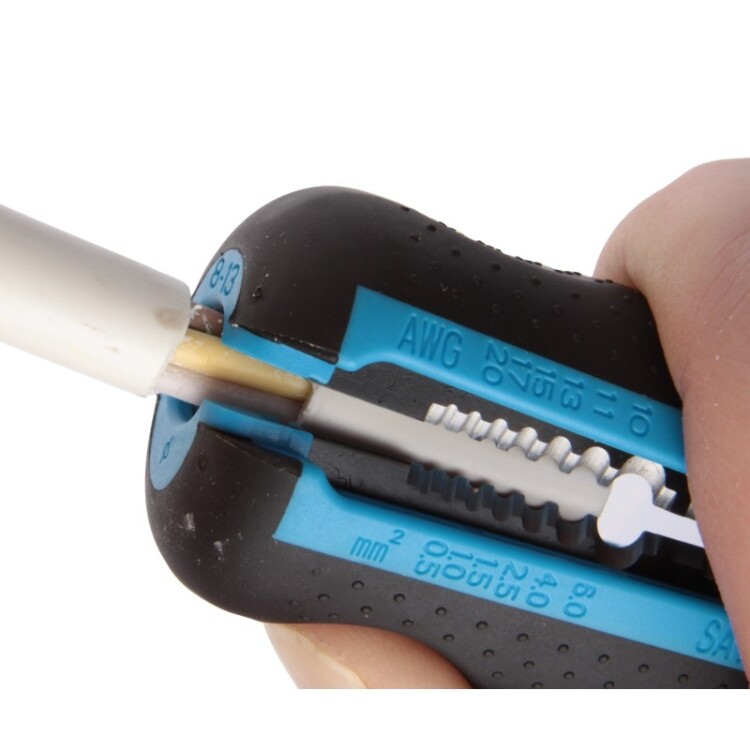 6 в 1:;снятие изоляции с проводов сечением 0.56.0 мм2;снятие оболочки с круглых кабелей 813 мм;зачистка коаксиальных кабелей RG-6, SAT;резка проводов до 9 мм;индикатор напряжения 110/230 В;2 двухсторонние намагниченные отвертки из хром-молибденовой стали;Шкала для определения длины снятия изоляции;Ограничитель длины для разделки круглых кабелей;Разделка круглых кабелей:;NYM от 2х1.5 до 5х2.5 мм2;ПВС от 2х0.75 до 5х2.5 мм2;МКЭШ от 2х0.5 до 14х0.75 мм2;ПВ/АПВ от 10 до 70 мм2;Двухсторонние отвертки (позидрив/шлиц):;PZ-1 / 3.5х0.6;PZ-2 / 4.0х0.8;Прецизионная заточка лезвий;Лезвия изготовлены из качественной инструментальной стали. Твердость HRC 60...64;Эргономичная двухкомпонентная раскрывающаяся рукоятка со вставками из термопластрезины и замком-фиксатором;Вес: 145 г;Длина: 200 мм;