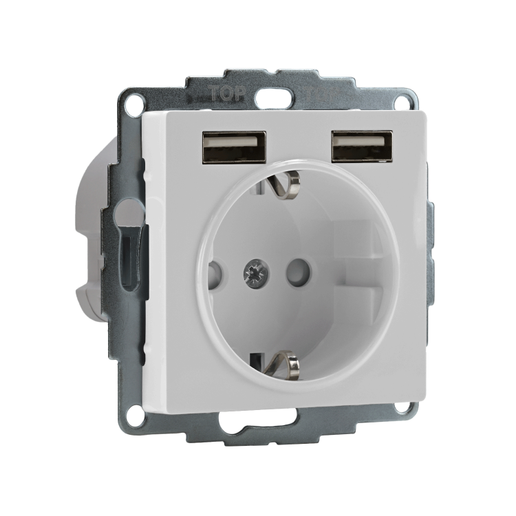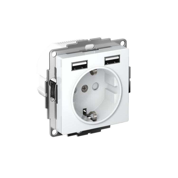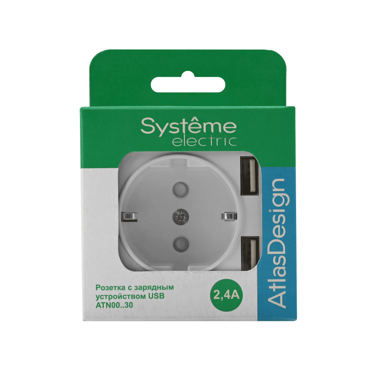 Systeme Electric AtlasDesign Белый Розетка SO + USB A+A, 5В/2,4А, 2х5В/1,2А, механизм
