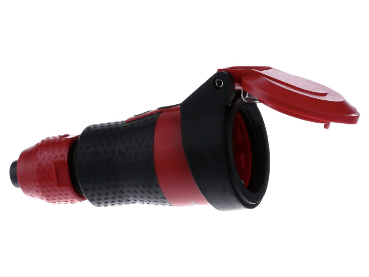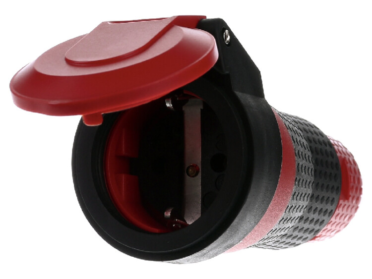 Кабельная розетка SCHUKOultra Pro, 2-комп. технология, с индикатором напряжения и самозакрывающейся крышкой, IP54, 16 A 250 В, красн./черн., согласно DIN 49440/441 для подключения проводов сечением до 3 x 2,5 мм²
