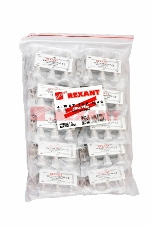 Телевизионный ответвитель представляет собой устройство, необходимое для отвода телевизионного сигнала от магистральной линии передач. Ответвитель используют в тех случаях, когда телеприемники находятся на большом удалении друг от друга. При этом сигнал распределяется по внутридомовой схеме разводки. Данный ответвитель имеет 4 отвода мощностью 12 дБ Rexant. Подключается такой ответвитель с помощью стандартных F-разъемов. Ответвитель имеет один вход для магистрального кабеля, четыре абонентских выхода (12 дБ) и один выход для магистрального кабеля. Ответвители иногда называют проходными делителями, т.к. ответвляется лишь небольшая доля сигнала, а основной сигнал проходит дальше.