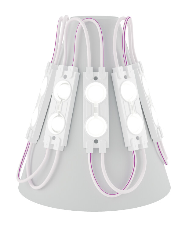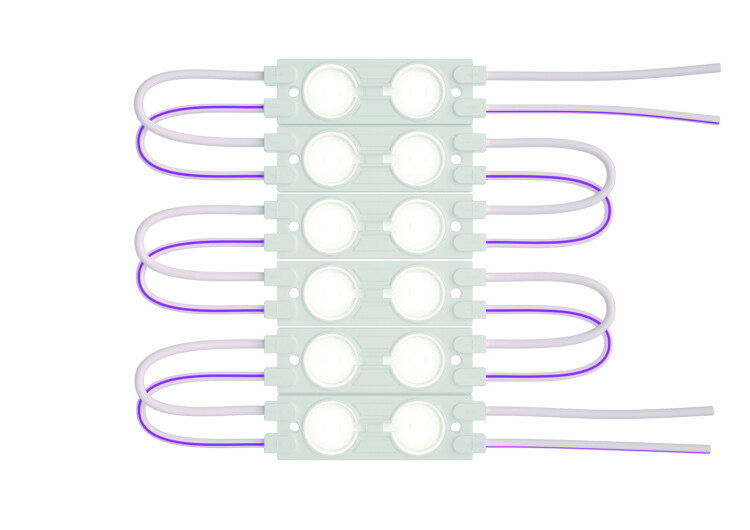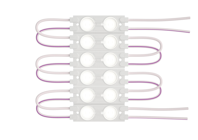 Светодиодные LED-модули - более универсальный аналог светодиодным лентам. В отличие от лент, их можно наклеивать под любыми углами на любую поверхность и свободно менять направление монтажа между каждым модулем.Цепочку LED-модулей можно обрезать после любого модуля без нарушения его работы по оставшейся длине.Это современный способ создания внутреннего освещения, подсветки ниш, лестничного пространства, систем хранения, а так же декоративного и художественного оформления любых объектов и любых форм.Легко и быстро устанавливается на любой гладкой поверхности с помощью скотча, расположенного на оборотной стороне модулей.Светодиодные модули закрытого типа в герметичном корпусе из ABS пластика с линзами и платой-радиатором.В упаковке находится 4,7 метровая лента из 40 модулей, на каждом модуле расположено по 2 светодиода с цветовой температурой 2700 К. Степень защиты модулей: IP65 применение внутри и снаружи помещений.