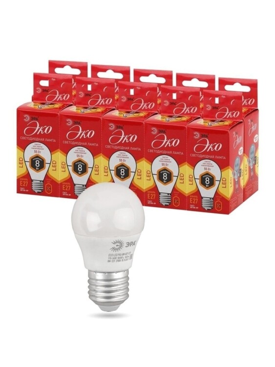Бытовая светодиодная лампа ЭРА Серии Бюджет, создаёт яркое ровное освещение и экономит до 90% электроэнергии по сравнению с лампой накаливания с аналогичным световым потоком. Светит теплым светом с жёлтым оттенком - такая цветовая температура эффективна для отдыха и уютной атмосферы в доме. Используется в потолочных, настенных, настольных светильниках, в люстрах и бра. Мгновенно включается и не нагревается.