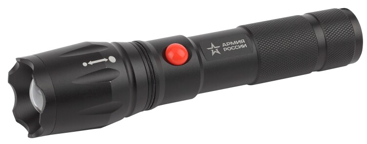 ЭРА Армия России Калибр - универсальный светодиодный аккумуляторный фонарь с лучом повышенной дальности, пятикратным зумом и встроенным светонакопителем. Его легко найти в тёмном помещении или в траве - после выключения сохраняет лёгкое свечение.Серия фонарей ЭРА Армия России - совместный проект отечественного бренда ЭРА и АО "Военторг", действующего на основании лицензии Министерства обороны РФ. ЭРА Армия России Калибр оснащён ёмким литиевым аккумулятором (2100 мАч), одного заряда которого хватает на 7 часов непрерывной работы. Зарядное устройство в комплекте. Светодиодный луч повышенной дальности имеет возможность фокусировки. Пять режимов, удобных пользователю - от ближнего заливающего света (для того, чтобы хорошенько осмотреться вокруг в темноте) до длинного направленного луча (чтобы определиться с дальнейшим направлением пути). ЭРА Армия России Калибр выглядит отлично. Благодаря необычному фактурному дизайну корпуса и тщательной сборке его приятно держать в руках, а за счёт продуманного функционала им приятно пользоваться. Фонарь украшает фирменная звезда Армии России - знак качества и особого статуса бренда. Аккуратная красная кнопка включения - дополнительный дизайнерский бонус.