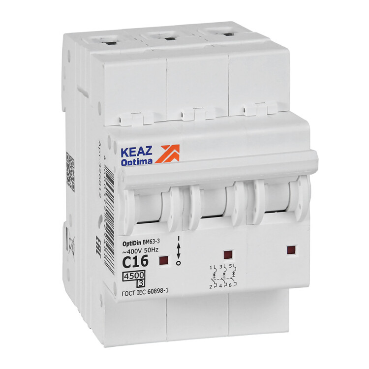 КЭАЗ OptiDin BM63 Автоматический выключатель 3P 16А C 4,5кА AC (BM63-3C16-4,5-УХЛ3).