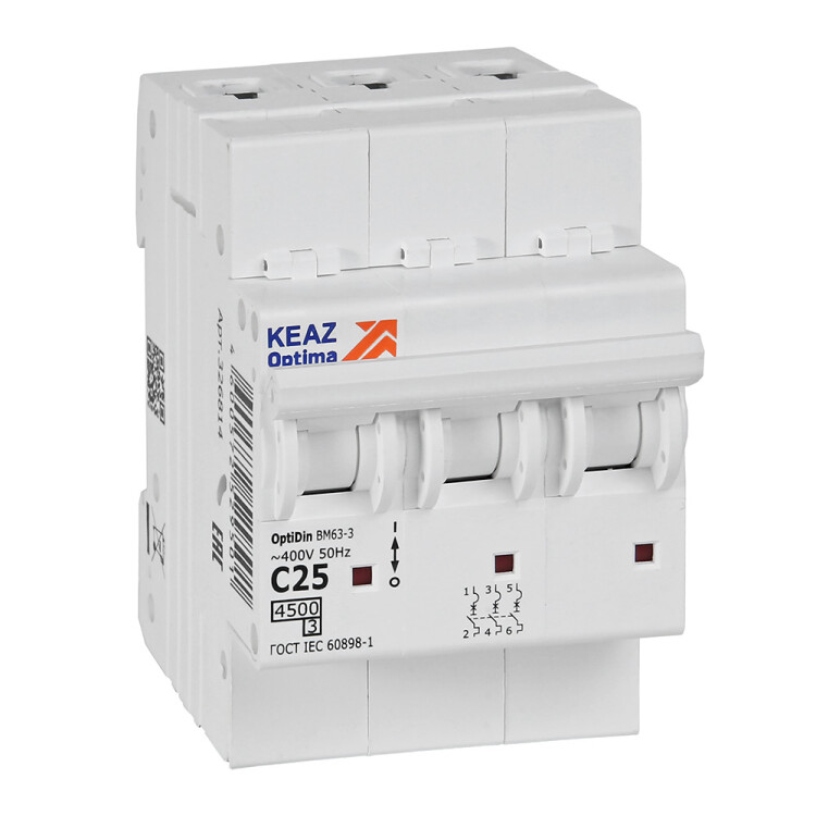КЭАЗ OptiDin BM63 Автоматический выключатель 3P 25А C 4,5кА AC (BM63-3C25-4,5-УХЛ3).