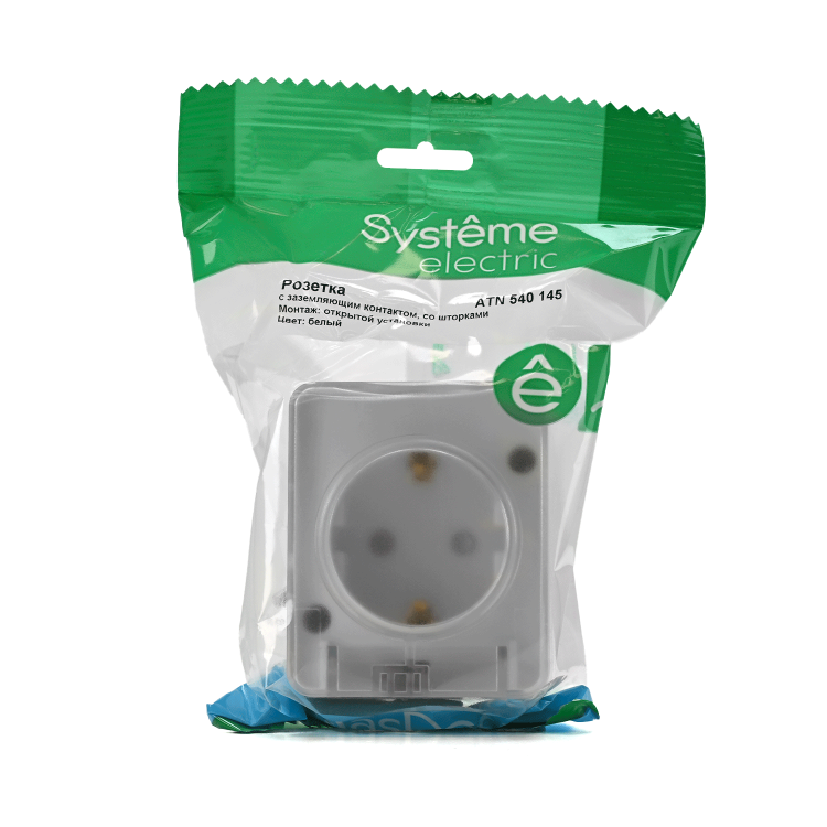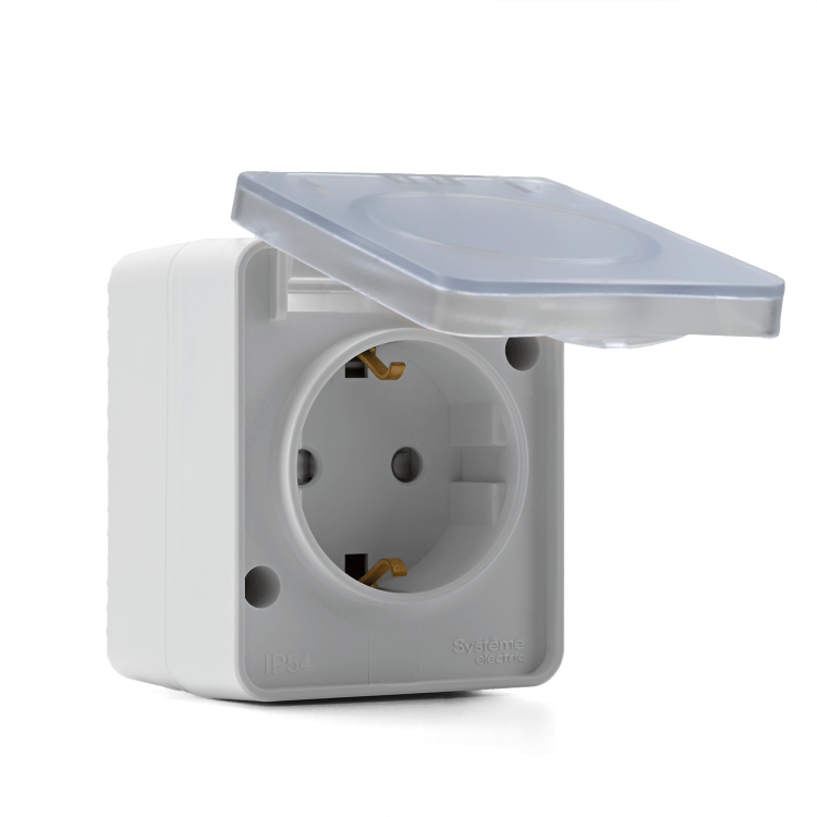 Розетка с заземлением со штор ками для открытого монтажа, 16А, 250В.