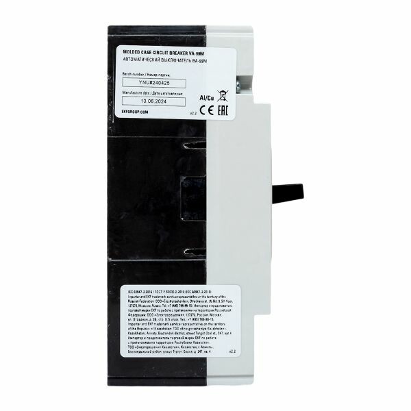 Выключатель ВА-99М выполнен в виде моноблока и состоит из основания и крышки с фальшпанелью, в которой имеется окно для рукоятки управления и толкатель кнопки «Тест» - проверки механизма отключения выключателя. Основание выполнено из термостойкой пластмассы, не поддерживающей горение и являющейся несущей конструкцией для присоединительных зажимов, неподвижных и подвижных контактов с системой дугогашения, механизма управления, блока защиты от сверхтоков. Крышка закрывает все подвижные элементы механизма управления и внутренние токоведущие части.