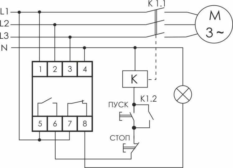 Реле контроля и наличия, чередования фаз предназначено для защиты электродвигателей и электроустановок, питаемых от трехфазной сети в случаях: отсутствия хотя бы одной из фаз, асимметрии напряжения, нарушения чередования фаз. Регулируемые асимметрия и время отключения,2 модуля, монтаж на DIN-рейке 3х400/230+N 2х8А 1NO, 1NC IP20 Евроавтоматика ФиФ